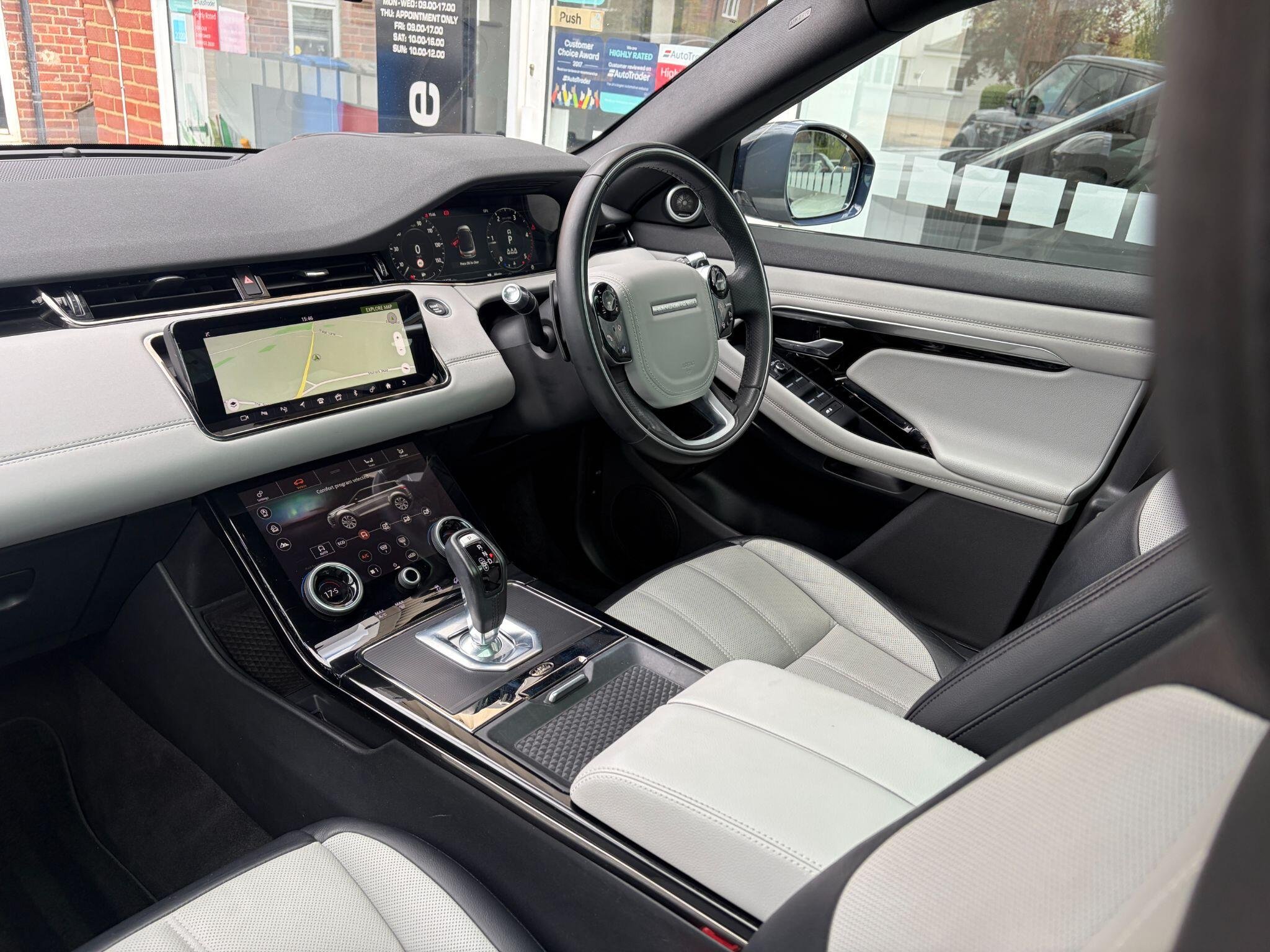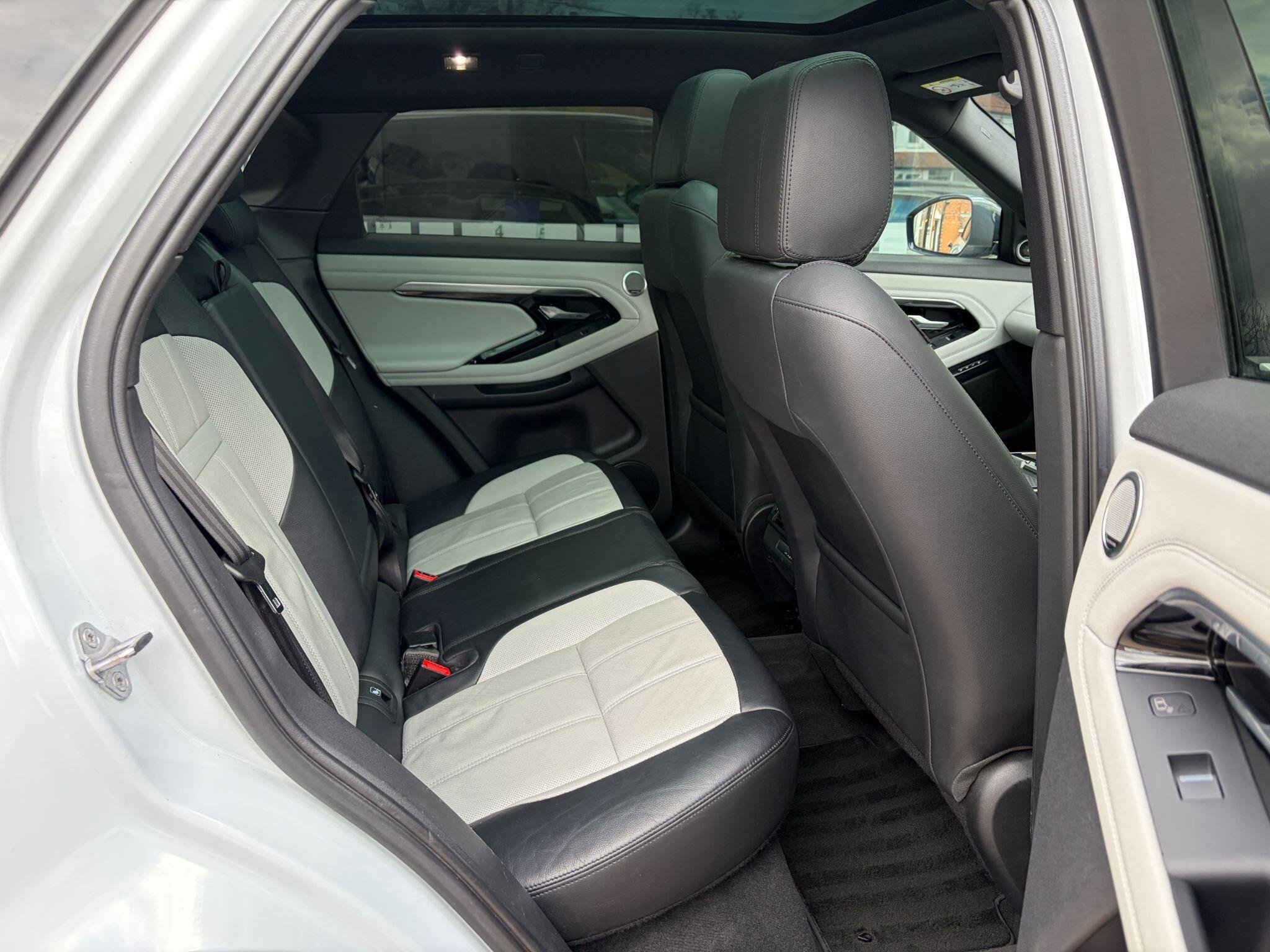 ** NATIONWIDE DELIVERY ** HEAD UP DISPLAY ** ELECTRIC / HEATED / MEMORY SEATS ** PANORAMIC SUNROOF ** APPLE CARPLAY ** MERIDIAN ** ADAPTIVE CRUISE ** SAT NAV ** DAB RADIO ** LED SIGNATURE LIGHTS ** 20" ALLOYS ** Rr VIEW CAMERA ** BLUETOOTH AUDIO / PHONE ** PRIVACY GLASS ** Presented in beautiful Yulong (Glacier) White metallic with contrasting perforated Cloud Grey & Ebony Black full leather interior trim. Leather extended to dash and door cards. Benefitting from a full Land Rover main dealer & Land Rover specialist service history. (4 Services). Specification includes full colour touch screen infotainment system with satellite navigation, Apple Carplay, rear view camera, DAB radio, Bluetooth audio streaming, i-POD / AUX / USB interface, Bluetooth telephone, Meridian hifi / speaker system, front & rear parking sensors with park assistant, panoramic glass sunroof with retractable sun shade, electrically adjustable driver & front passenger seats with memory functions, heated seats, front centre armrest with storage, dual zone climate control / air conditioning, reach & rake adjustable (heated) multi function steering wheel with paddle shift gear change, head up display, adaptive cruise control, lane keep assist, blind spot monitor, auto headlamps with "signature" LED running lights, rain sensitive wipers, electrically adjustable & folding door mirrors, auto dimming rear view mirror, electric windows, power tailgate (open & close), keyless entry with keyless push button start, switchable all terrain 4wd system, remote central locking with alarm / immobiliser, privacy glass, R-Dynamic exterior body styling, contrast Narvik Black roof, finished with 20" gloss Black diamond cut / polished alloy wheels. Premium Pirelli tyres all round. Supplied with 2 keys. Buy with confidence from a long established dealer with fantastic reputation, feedback & reviews.