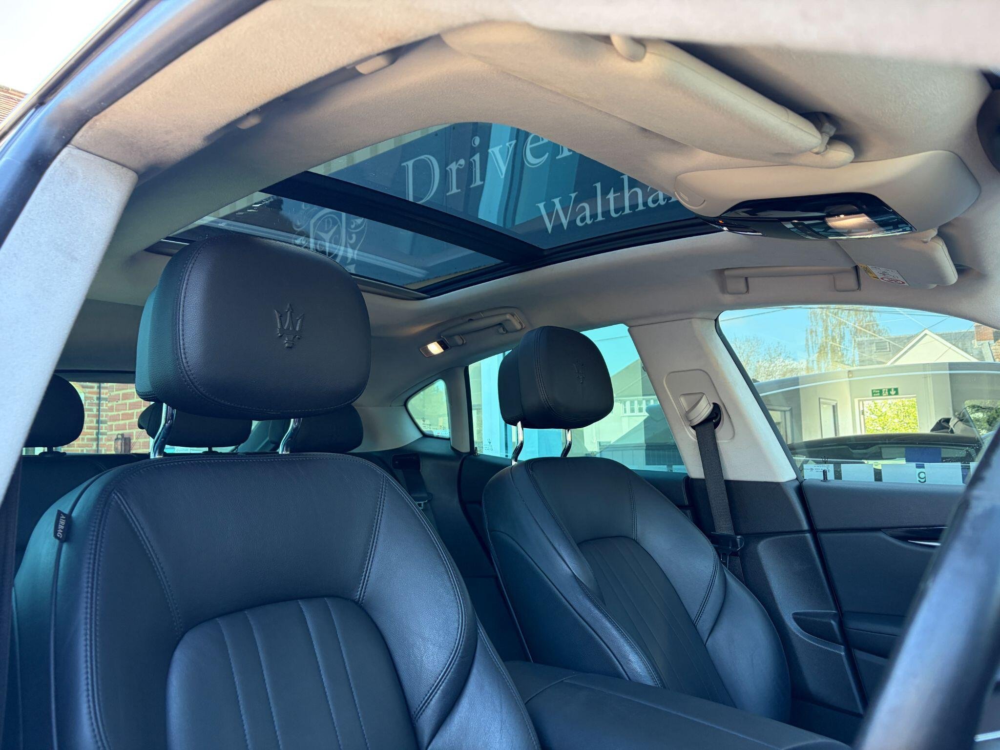 ** NATIONWIDE DELIVERY ** 6 MAIN DEALER SERVICES ** SLIDING PANORAMIC ROOF ** SAT NAV ** REAR CAMERA ** HEATED / ELECTRIC / MEMORY SEATS ** 19" ALLOYS ** Presented in beautiful Nero Black metallic with complimentary Nero leather interior. Leather extended to dash and door cards. Benefitting from a full Maserati main dealer service history (6 services). Service recently completed. Specification includes satellite navigation with colour touch screen, rear view camera, DAB radio, Bluetooth audio streaming, i-POD / AUX / USB interface, Bluetooth telephone, front & rear parking sensors, electrically adjustable (12 way) front seats with drivers memory function, heated seats, front centre arm rest with storage facility, dual zone climate control / air conditioning, reach & rake adjustable multi function steering wheel, cruise control, auto bi xenon headlamps with LED daytime running lights, rain sensitive wipers, electrically adjustable and folding exterior door mirrors, auto dimming rear view mirror, keyless push button start with keyless locking, "Sports Mode" swtchable suspension & exhaust, adjustable ride height, electronic push button park brake, ABS brakes, multi airbags, vehicle stability / traction control, rear seat isofix, tailored Maserati over mats, remote central locking with alarm / immobiliser, privacy glass, front fog lamps, finished with 19" Zefiro alloy wheels (unmarked). Premium Michellin tyres fitted all round. Supplied with original leather owners wallet, owners / operators manuals & 2 keys. Buy with confidence from a long established dealer with fantastic reputation, feedback & reviews.