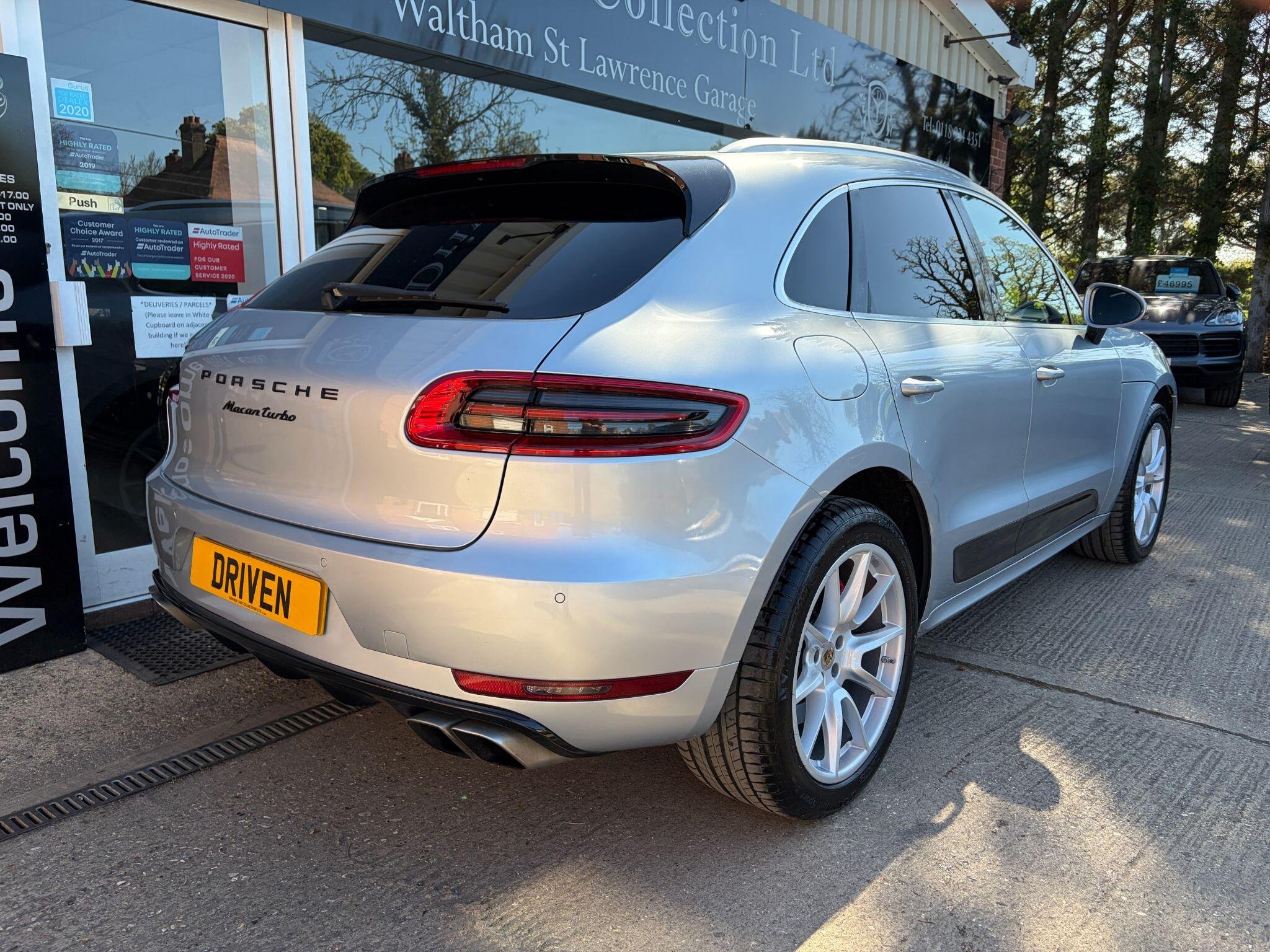 - Two Twin Tailpipes Outside Left and Right in Macan Turbo-specific Design with Matt Silver-Coloured Finish