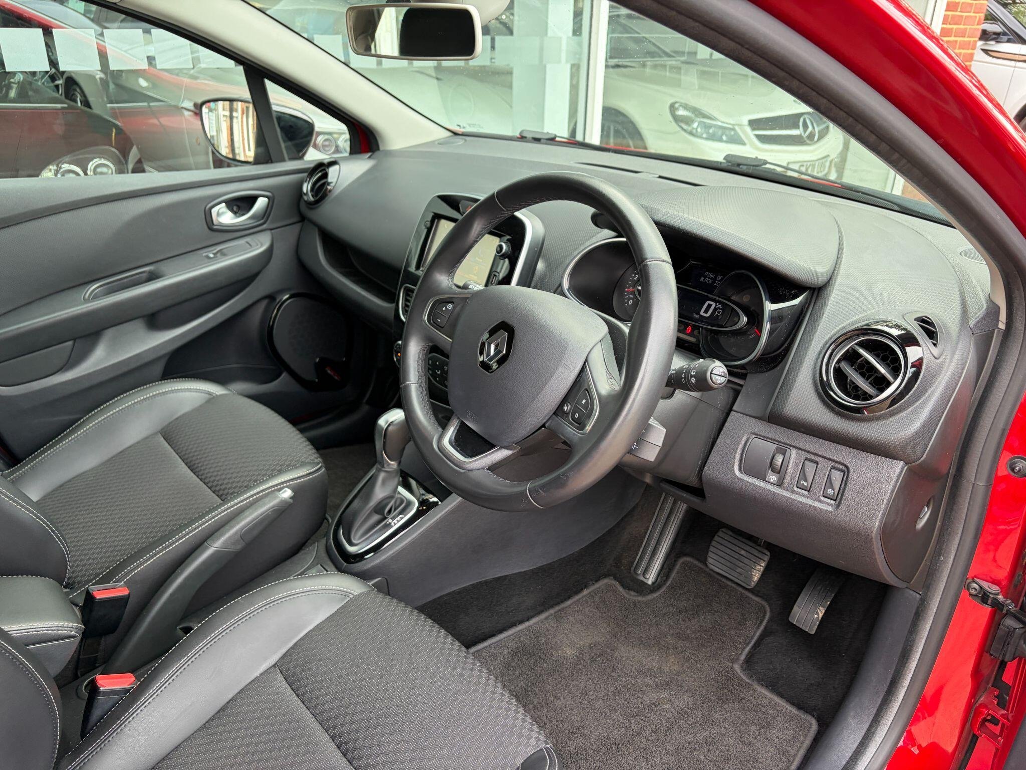 ** NATIONWIDE DELIVERY ** SAT NAV / MEDIA ** BLUETOOTH ** PARKING SENSORS ** 17" ALLOYS ** FOLDING MIRRORS ** KEYLESS ** Presented in Flame Red metallic with contrasting Black part leather interior trim. A beautiful example benefitting from a full service history. Specification to include, Renault infotainment system with full colour touch screen, satellite navigation, USB / AUX integration, Bluetooth audio streaming, Bluetooth telephone, B"Bass Reflex" hi fi / speaker system, front & rear parking sensors, height adjustable driver seat, front centre armrest with storage, climate control / air conditioning, reach / rake adjustable multi function steering wheel, cruise control with speed limiter function, auto headlamps with LED daytime running lights, auto wipers, electrically adjustable & folding door mirrors, electric windows, keyless entry / push button start, ABS brakes, multi airbags, rear seat isofix, tailored carpet mats, remote central locking with alarm / immobiliser, Black exterior pack (mirror caps, side moudlings / pillar trims & grille), finished with 17" gloss Black alloy wheels (unmarked). Supplied with original owners wallet, owners / operators manuals & 2 keys. Buy with confidence from a long established dealer with fantastic reputation, feedback & reviews.